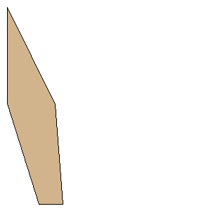 Download as PDF | Point 1: | (0.0000 mm, 88.7003 mm) | | Point 2: | (29.3709 mm, 180.1240 mm) | | Point 3: | (50.9046 mm, 180.1240 mm) | | Point 4: | (44.2934 mm, 89.0781 mm) | | Point 5: | (0.0000 mm, 0.0000 mm) | | Width: | 3.4921 inches (88.7003 mm) | | Height: | 7.0915 inches (180.1240 mm) |