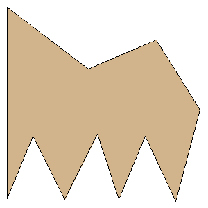 Download as PDF | Point 1: | (0.0000 mm, 37.3880 mm) | | Point 2: | (5.0159 mm, 25.1823 mm) | | Point 3: | (11.3289 mm, 37.4575 mm) | | Point 4: | (17.6418 mm, 24.8316 mm) | | Point 5: | (21.8505 mm, 37.4575 mm) | | Point 6: | (26.9359 mm, 25.1823 mm) | | Point 7: | (32.8981 mm, 37.8082 mm) | | Point 8: | (37.6328 mm, 20.0969 mm) | | Point 9: | (29.0402 mm, 6.4188 mm) | | Point 10: | (15.8882 mm, 12.0303 mm) | | Point 11: | (0.0000 mm, 0.0000 mm) | | Width: | 1.4816 inches (37.6328 mm) | | Height: | 1.4885 inches (37.8082 mm) |