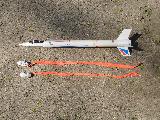 Astrosat LSX (Light Satellite Experimental) of the Estes Space Corps ejects two streamer equipped satellites at the end of its acent. This futureistic vehicle flies missions up to 300'