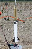 Originally started as a quick & dirty cluster rocket, this is basically a pair of BT55 tubes strapped together with one set of fins. Two 24mm mounts, two pointy nose cones. Payload bay on one side, parachute on the other. I'll probably try to have some decals made for it yet.