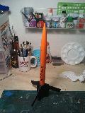 This is a BT-50 upscale of the S.C.R.A.M. from Estes Mini Tri Pack. The rocket is powered by standard 18mm motors and comes down on a 12" chute. Since I was doing a whole "SCRAMily" of these rockets, I chose a non traditional paint job, going with an orange and black scheme for this one.