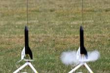 SCRAM 140  Flight It turned in a nearly perfect vertical flight before suffering a shock cord failure on deployment. The nose cone and streamer were not found, but the body did a perfect lawn dart maneuver, suffering minor damage. A new nose cone and some minor repair will have this one flying again. - A8-3 - ... [More]