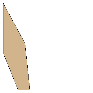 Download as PDF | Point 1: | (0.0000 mm, 95.2500 mm) | | Point 2: | (28.5750 mm, 165.1000 mm) | | Point 3: | (50.8000 mm, 165.1000 mm) | | Point 4: | (41.2750 mm, 76.2000 mm) | | Point 5: | (0.0000 mm, 0.0000 mm) | | Width: | 3.7500 inches (95.2500 mm) | | Height: | 6.5000 inches (165.1000 mm) |