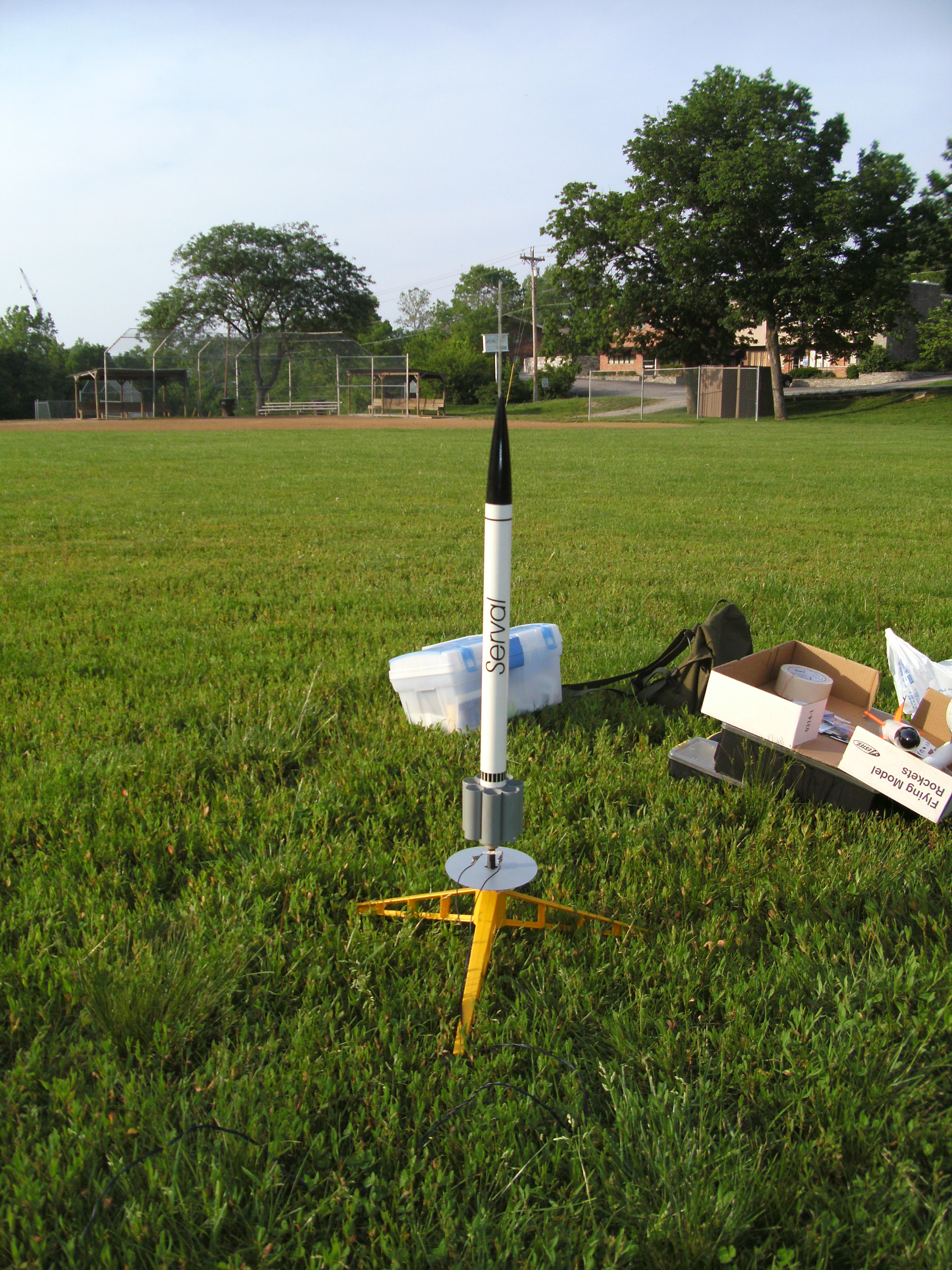 (07/20/98) The Custom Serval was the second tube-fin rocket that I put together, the first being Rogue's Hex Courier . The Serval is a single-stage, 18mm-powered rocket. The rocket is 23.25" tall and 1.325" in diameter. It uses a hollow, plastic nose cone and, of course, tube fins (seven of them). An elastic shock cord and a 2"x36" metallic mylar ...