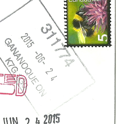 During the Canadian leg of the flight the rocket mail covers were cancelled at the Post Office in Gananoque Ontario.