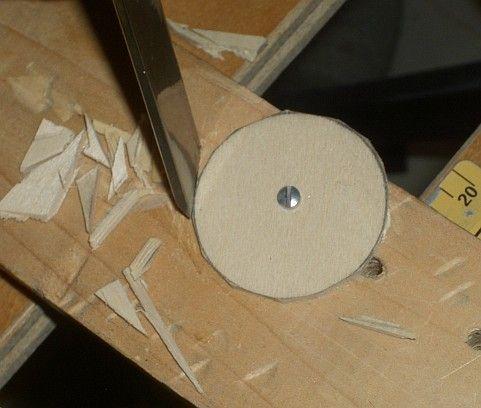 | Rough shape the circle. I used a wood chisel to cut away the excess wood. | ![]() |