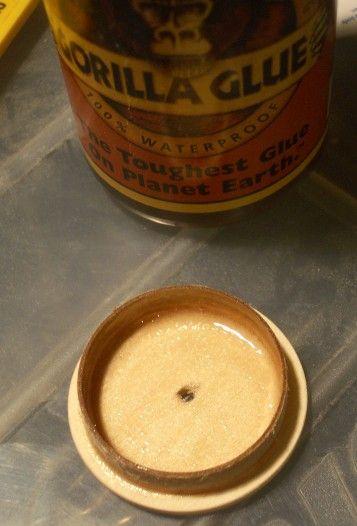 | Glue the coupler to the disk. I used Gorilla Glue, but have since decided that this was overkill since there is not much load on this joint. Simple wood glue would have been sufficient. | ![]() |