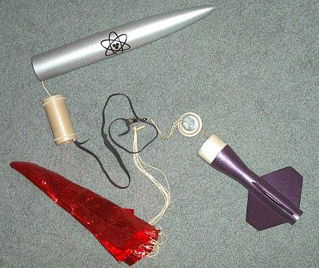 | Putting it all together. Thread the shock cord through the BT-55 tube assembly. The rest of the recovery system and the lower rocket is attached as per the original Triatomic directions. |