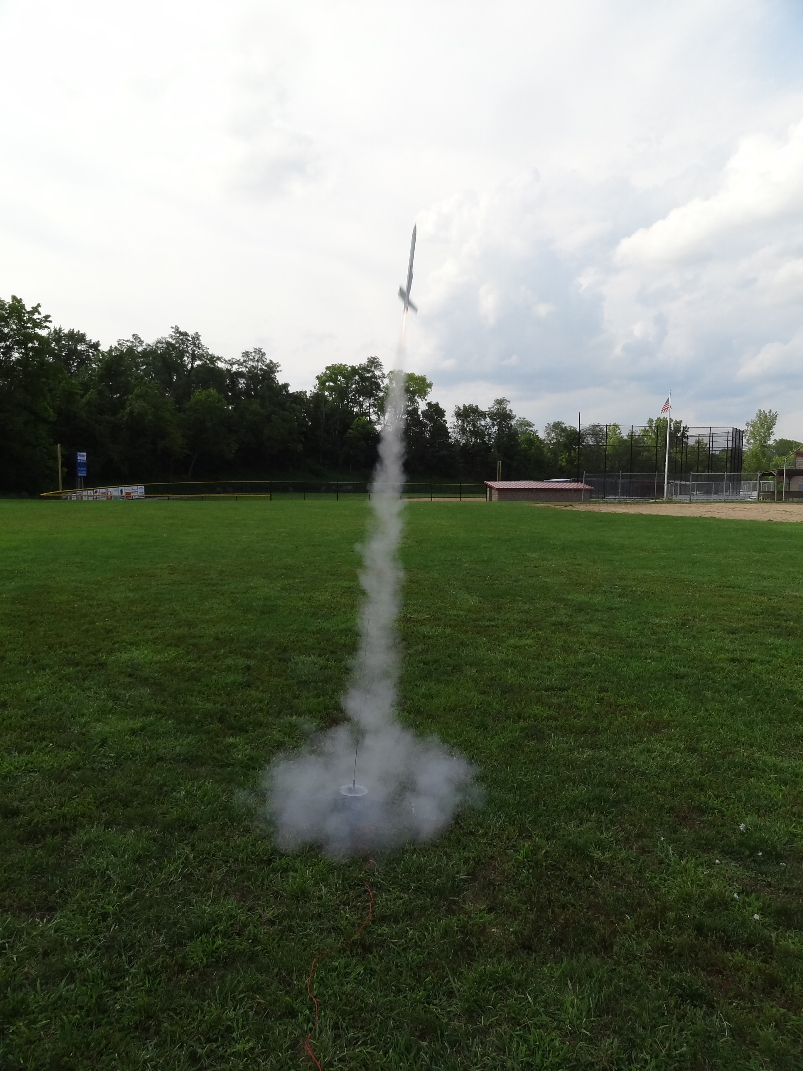 High flight that kicked right off the pad. Recovered just at the base of the trees on the hill. Thought it was a goner.