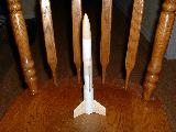 This was not a production kit but rather a free plan provided by Estes Industries. The rocket featured a 1" tube that surrounded the lower half of the airframe and aft end in an attempt to provide thrust augmentation. The booster stage of this two-stage rocket wasd the augmenter tube, which was permanently attached to the sustainer. After staging, the booster motor was ejected out of lower tube, which then became the thrust augmenter for the sustainer. This boosted design was created in an attempt to get the rocket up to sufficient speed with the booster motor so that thrust augmentation could be attempted when the sustainer motor was firing. The designer referred to the Lil' Augie as "an experiment."