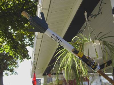 After learning a lesson with the fins I was much more careful in painting the NC assembly. I first went outback and found an appropriate size stick to hold the assembly without slipping. I then applied two light coats of green paint to it the then put it in my flag holder outfront on the porch to dry overnight (I do this quite often as the wife complains about the fumes if I let them dry inside). I then grabbed the BT-55 tube and sprayed the masked off slots with the green paint also. I then gave the BT an hour to dry and then removed all masking. At this point I left all parts outside on the porch to dry overnight. To my horror we got some sprinkles that night. Fortunately the NC assembly was the only thing that got wet and it really didn't get that wet as my flag holder is under a large tree that sheltered it. As a testament to my painting though there was no water damage to it. Have to admit in the shock of it all I forgot to take photos.