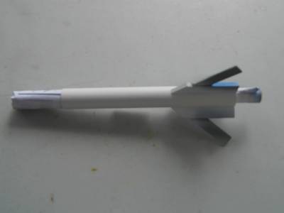 Yesterday I applied the decals. There are only 4 or 5 decals deepening on which language you choose to use. The decals are printed in 3 languages with the exception of the lower half of the XERAT 42581 decal. These went on without any trouble. After giving rocket several hours to dry in the sun again, I applied two light coats of Krylon Matte Finish to the entire rocket to protect paint & decals. All that's left now is to attach the recovery system.