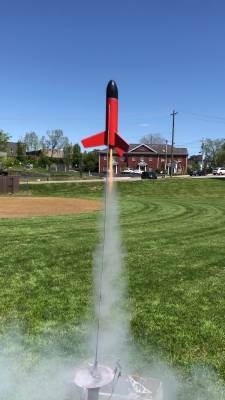A miniaturized version of the Big Betty, this little guy is a quick, easy build and reliable flyer. The parts list includes: Plastic nose cone BT-60 (equiv.) body tube 3 Laser-cut balsa fins Centering rings 18mm motor tube Metal motor hook Thrust ring 14" plastic chute Kevlar ® /elastic shock cords 1/8" launch lug Peel n stick decal This was ...
