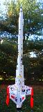 The Interceptor: This rocket kit is the new release of the Estes Interceptor. It flies on 18mm B and C motors. This kit was modified with an ejection-gas baffle and Kevlar shock cord mount, and an Iris Altimeter Payload Section. After 6 months, it's finally ready. Construction went well, but painting using bargain-price Home Depot paint resulted in "orange peel" finish, which had to be sanded off - TWICE, and re-applied. The paint then reacted with the primer (SAME BRAND!!) and crinkled and cracked the finish. Re-sanded again and then used the expensive but acceptable Testors paint for $5 per 3 oz can. Clear-coat, decals, then 3 more clear-coats and finally it's done. With the generous glue, extra paint and the added electronics bay, she weighs in at 164.5 grams (5.6 oz.) and is 3.2" longer than stock. I'll plan to use the shorter ejection motors than recommended, just in case it's a little too heavy. Typically for me, this model only passed a string-stability test after I added 17 grams of nose-weight on the base of the nosecone. (Am I doing them wrong??) We'll see how well she flies, but she sure is a pretty gal!