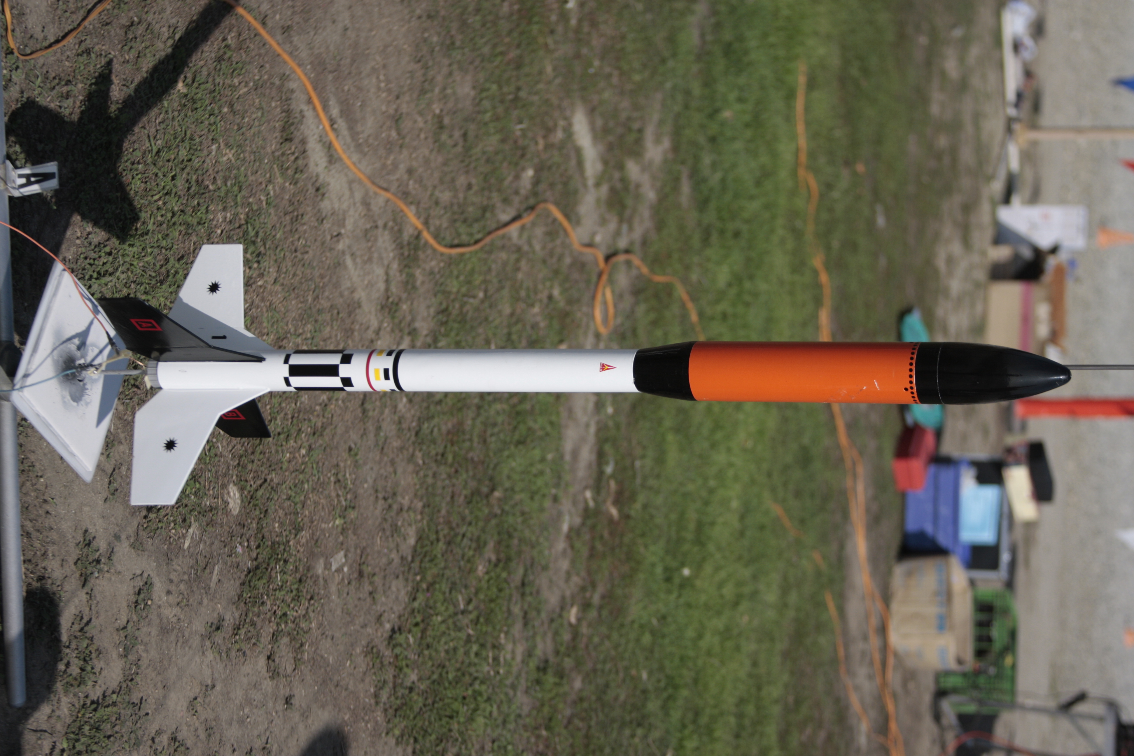 Arcing flight. Old motor. Delay went way long. When ejected the payload section knocked off two fins, then the body flew into the chute and cracked another on landing. I am done. Three bad flights. Will salvage the payload section and try something else.