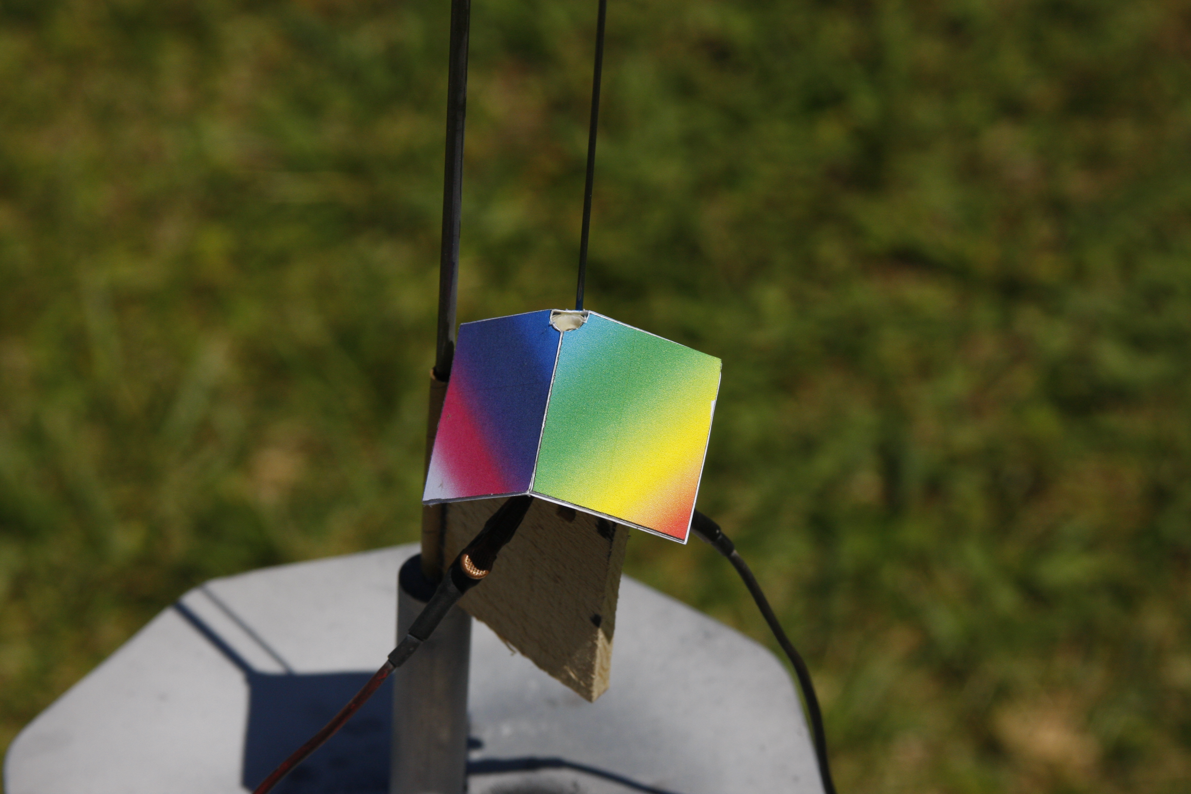 Cool cardstock odd-roc freebie plan from Art Applewhite Rockets for Quest Micromaxx II engines. EZ to build once I figure out which way the folds on the bottom went. Crowd pleaser and you can't beat the price! Thanks Art! This one I used the blank Qubit outline on the PDF and used Photoshop to add a gradient layer. Then printed on 64 lb cardstock with an ink jet printer