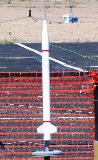This is a four balsa fin plastic nose cone scale like rocket. It uses a one piece BT60 body tube, a D motor mount and a plastic nosecone. The kit also came with clay to add to the plastic nosecone and a mylar parachute and swivels for the shock cord and parachute shroud lines. No decals are provided, you must paint the red stripes yourself. Recommended motors are D12-3, D12-5, Aerotech E15-7, E30-7, RMS E18-7 and RMS F24-7. It uses a 3/16 inch launch lug.