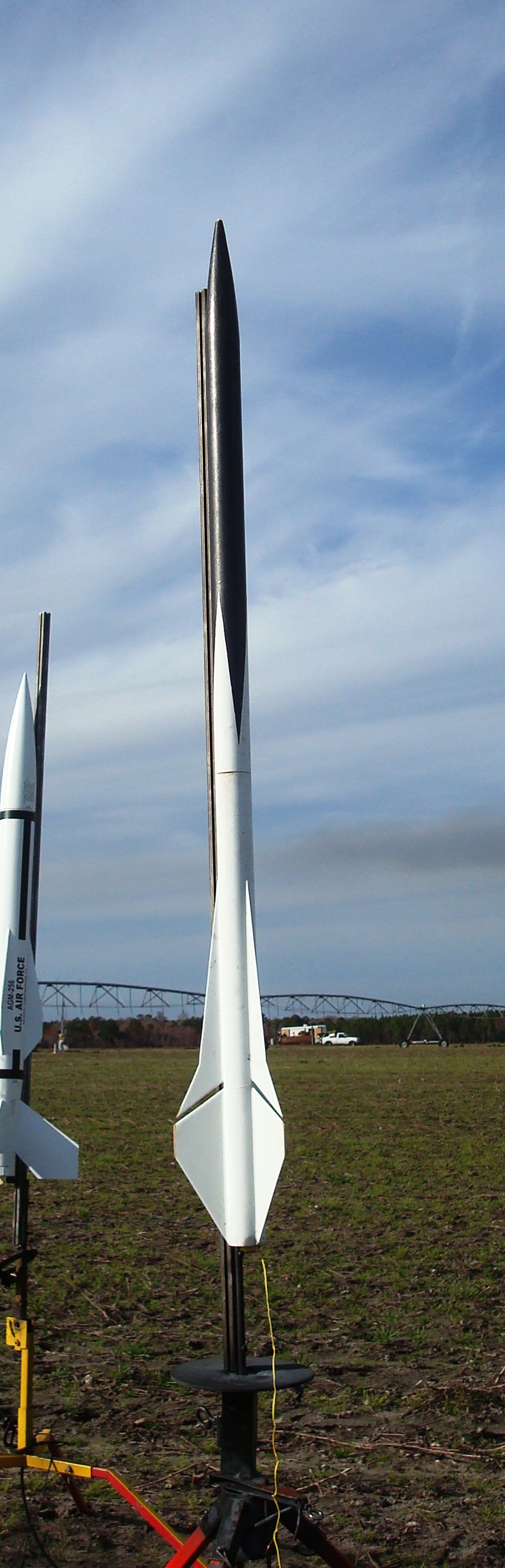 Another great flight! Awesome boost, straight and fast off the rail. Lost sight of it after burn out and never did pick it up. Luckily someone at the LCO table was able to give me a good line and I ended up walking right to it. Recovered with no damage. Flown with a Jolly Logic Altimeter II with the following data recorded: Burn time 5.0 sec, peak acceleration 18.9g, average acceleration 4.3g, coast time to apogee 6.2 sec, ejection 1 sec after apogee, ejection altitude 2167 feet, descent rate 14 mph, flight duration 116.3 sec, peak altitude 2658 feet, peak velocity 467 mph.
