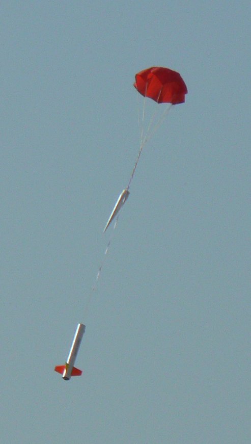 First flight; fast and straight. Slight nose cone damage from hitting a fin on rebound.