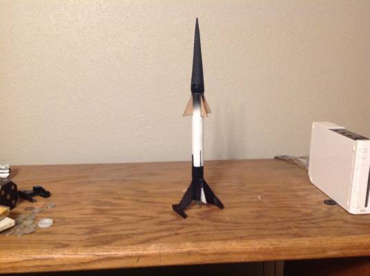 I took the airframe from the take bin at a launch, took a nose cone I had lying around, rolled a paper cone around it, put nose weight. Made the engine mount out of a few layered penny rolls. Used some spare centering rings from an alpha kit. Used a fin design scheme from a custom rockets kit. Cut them from a slightly thick sheet of balsa from a model plain kit. The upper fins are just cardboard. I rolled the launch lugs from penny rolls. It resembles a sounding rocket, which is why I used the nike name. The SB part just stands for scratch built.