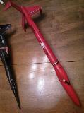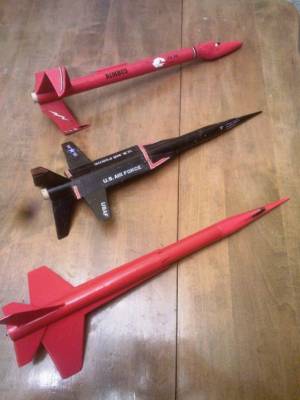 Stock build, though painted bright red. Recently repainted (still red) and completed with Excelsior decals.