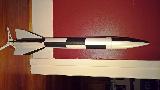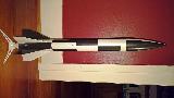 The model itself is 27.5" long, somewhat stubby, with a length ratio of about 12:1, has a 3G ogive balsa cone, neat boat tail and Six delta fins that are clipped in a slightly raked manner. Building with six fins is a little more challenging, but looks really cool, especially wrapped over the boat tail. The rocket is designed to fly on E20, E30, F32, or F44 motors. A 24mm motor mount was used to maximize the taper of the boat tail. I am now deciding on how to paint it, likely going with a black & white roll pattern.