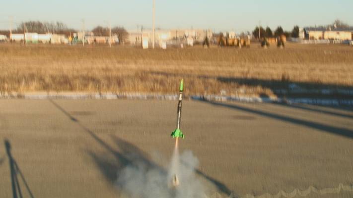 Launched with onboard video camera. Rocket arced over towards the southwest and crashed into the ground. Parachute apparently deployed, but was torn from the rocket on descent. Camera did not record (though apparently was not damaged in the crash). Daniel recovered rocket about 200 yards southwest of the launch site. Body tube damaged, but probably repairable.