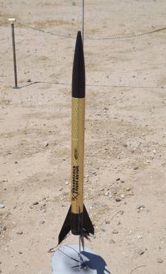 This is a basic single stage, four fin, plastic nosecone rocket. It is a ready to fly kit with minimal assembly which is to attach the parachute and you're done. A pretty basic rocket using standard B and C 18mm rocket engines. Estes item/kit number 002457. The rocket out of the box has two tubes that go together at a coupler joint which is also the separation point for the parachute ...
