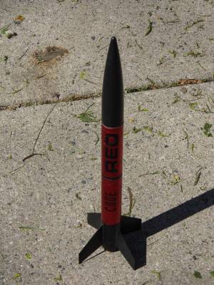 A ready to fly rocket single stage rocket which can take a real beating if it has to. Code Red has a cardboard airframe with molded motor mount which uses a locking ring to secure the motor. Also molded onto the motor mount are four plastic fins. This was a ready to fly rocket so no construction was required except attaching the parachute which was pretty simple. Many have said the nose ...