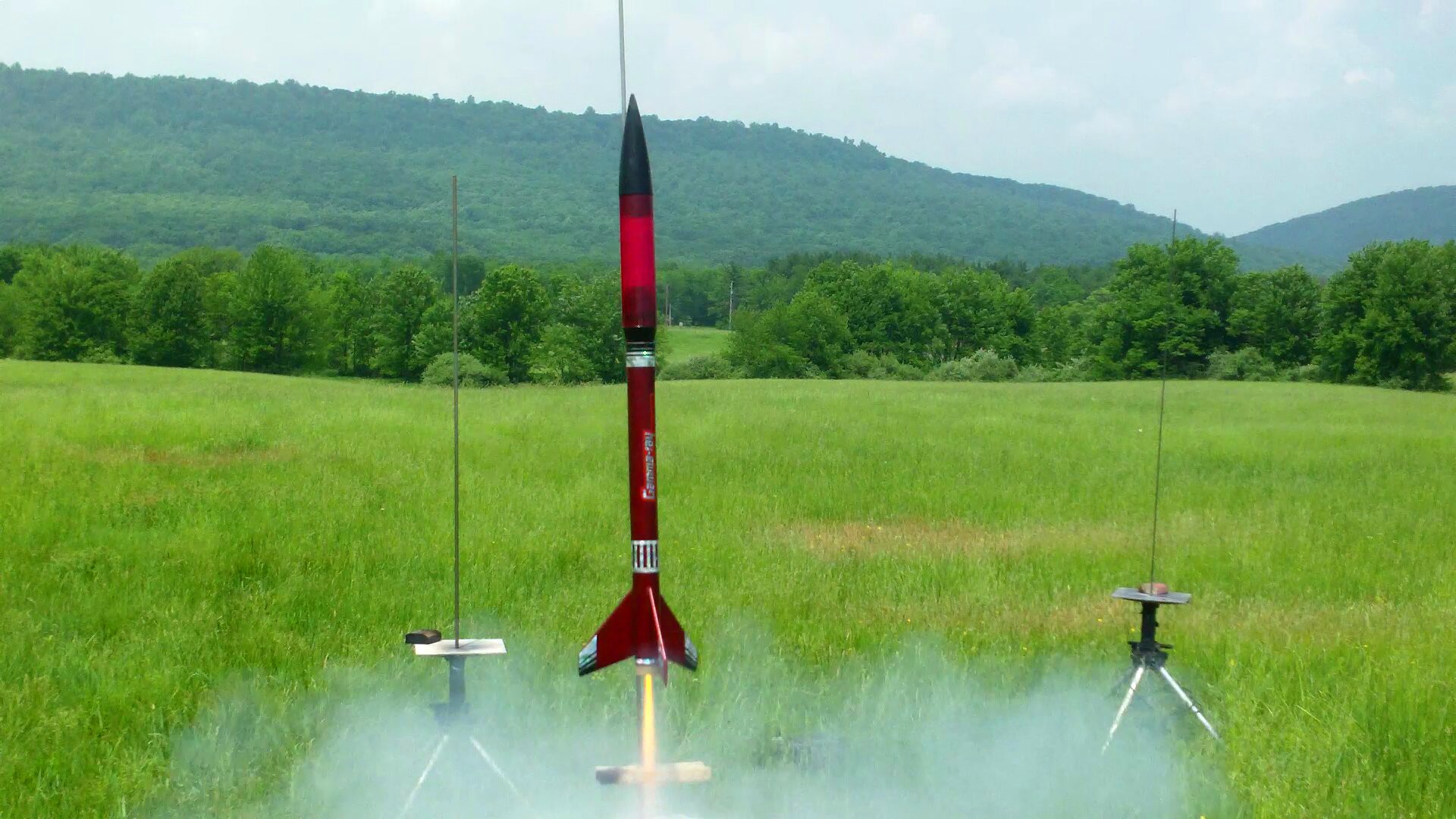 The Quest Gamma Ray is a small payload rocket designed to fly on 18mm (A,B,C) motors. It does fly well. It's main unique feature is a payload section made with translucent red plastic. The payload section's diameter is larger than the rest of the rocket, so it uses a transition section between the two tubes. It's small size makes it capable of travelling to very high altitudes. ...