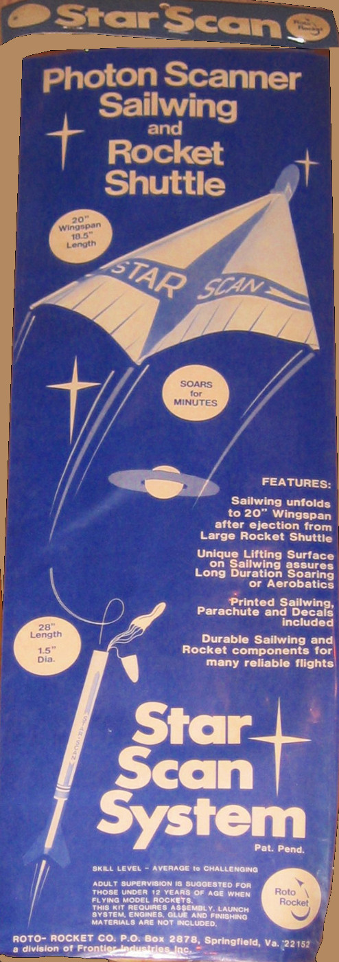 The Star Scan kit included a rocket booster (the "Rocket Shuttle") which ejected a Rogallo wing glider (the "Star Scan Photon Scanner Sailwing") at apogee.