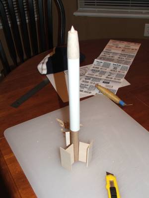 The Laser Torpedo was essentially a shortened Photon Disruptor with different decals and a Wolverine nose. Envisioning a fleet of Wolverines, I had bought several of the cones at NARCON from BMS , then found that the Wolverine didn't fly well enough to make a fleet. Checking John Brohm's Estes nose cone reference , I found that I had the option of building a Teros or the ...