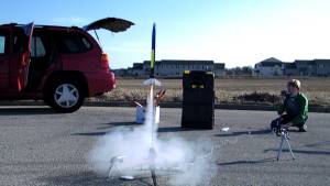 Brief: This is an Estes Rascal Kit #1897 and is silver in color. It is a pre-assembled kit where the only thing you need to do is attach the parachute to the rocket. The parachute is 12" in diameter, and the kit uses an Estes (rubber band) shock cord attached to the launch lug inside the rocket body tube. No painting is required. The package says it will go to 1200'. ...