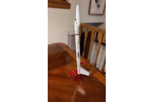Futuristic style rocket with fancy fins arrangement and very cool nose cone.  Assembly was a little more involved than most kits because of the fins. Otherwise, easy and straight forward. I finished the rocket like the package except I used metallic aluminum instead of light gray. I used Testors enamel for the red portions. Filling and sanding all fins gave me smooth and ...