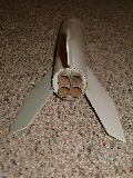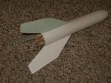 Based on the Baby Bertha design but with a slightly longer BT-60 tube by semroc I believe and modified for 4 13mm motors. Also features 3 fiberboard fins instead of 4 balsa ones for lighter weight as this rocket was built for competition in A - Clustered.