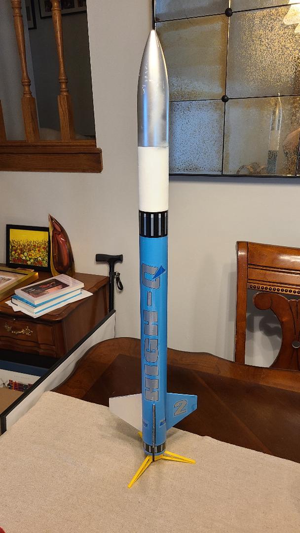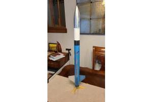 From Quest: High-Q is a great looking and performing mid-size rocket. Over 30 inches tall, the kit features blowmolded plastic nose cone, laser-cut balsa fins and a rugged 29mm diameter motor mount. Flights with an Aerotech F32-6W will go to almost 3,000 feet. Then your High-Q will recover gently on the big 18" fabric parachute. Includes big, easy-to-apply self adhesive decals. ...