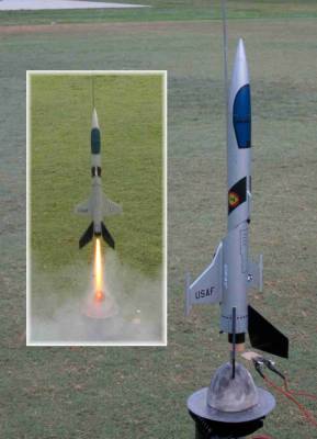Vertical boost with a slow turn to an estimated 250 feet. The crispy Quest parachute ejected but didn't open. There isn't much room for the parachute and I must have packed it too tightly. Still, no damage on recovery.