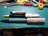 "Finless Rocket #3" - Third prototype design for RAIS (Ram Air Induction Stabilization) testing. Uses an outer compartmentalized shroud and air outlets to try to simulate "air fins" for rear stabilization. BT20 body tube, streamer recovery.