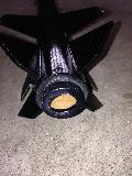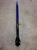 This is a scratch built, scaled down version modeled after the Binder Design Raptor. The body diameter is standard BT-60 and the overall length is about 34". The nose cone is molded plastic and the fins are 3/32" balsa. It has an ejection baffle, screw on motor retainer and 18" nylon parachute. It flies on 24mm black powder motors. I decided to do a blue to black fade on the paint, hence the rockets name.