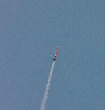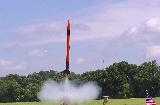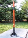The Renegade: It is a very old model built in the 1970s by my brother. The Renegade is a classic '70s kit. Not at all like the modern Renegade; this is your father's Renegade. This is a large, tall, D-powered model, finished in the original catalog paint scheme. Build credits for this kit actually go to my brother. I modified it by adding my usual altimeter payload bay ("Iris"). This adds 4-1/2 inches to the rocket's length and 17 grams of nose-weight. I also replaced the Estes plastic parachute with a better nylon cloth parachute, and use a Nomex cloth instead of wadding. After an Iris test flight with a D12-5, I’m going to load this baby up with a Aerotech E20-7W engine and push the boundaries of rocket power (for me, anyways). This model reaches about 500' on a D12-5, but on an E20, I would expect at least 1000'. (Iris is named after the Greek god of the rainbow. She is a messenger of the gods, linking the gods with humanity.) This rocket has flown higher than William Penn on top of the Philadelphia City Hall building, NASA's VAB building at Cape Kennedy, or the Cologne Cathedral in Germany.