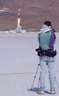 Flats. Some of my personal highlights of the BALLS coverage are all the P motors flown there. An interesting flight was had by Paul Robinson and Jim Rosson of the Skidmark rocket, which flew on three M4000 Kosdon motors. One of the motors did not light and this thing looked like an incoming air-to-surface missile as it impacted the desert floor well out into the playa away from the crowd.