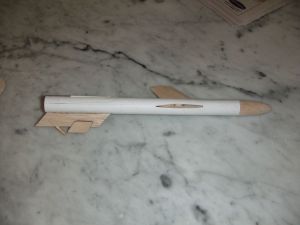 Brief: This is a pod-boosted glider. The unique features include a design that is essentially a flying wing, and forward canard fins on the pod which are adjustable to give a vertical boost. Construction: This is a reproduction of an old Estes boost-glider, kit number K-34. It includes all of the parts of the original, with some substantial improvements. All of the balsa parts ...