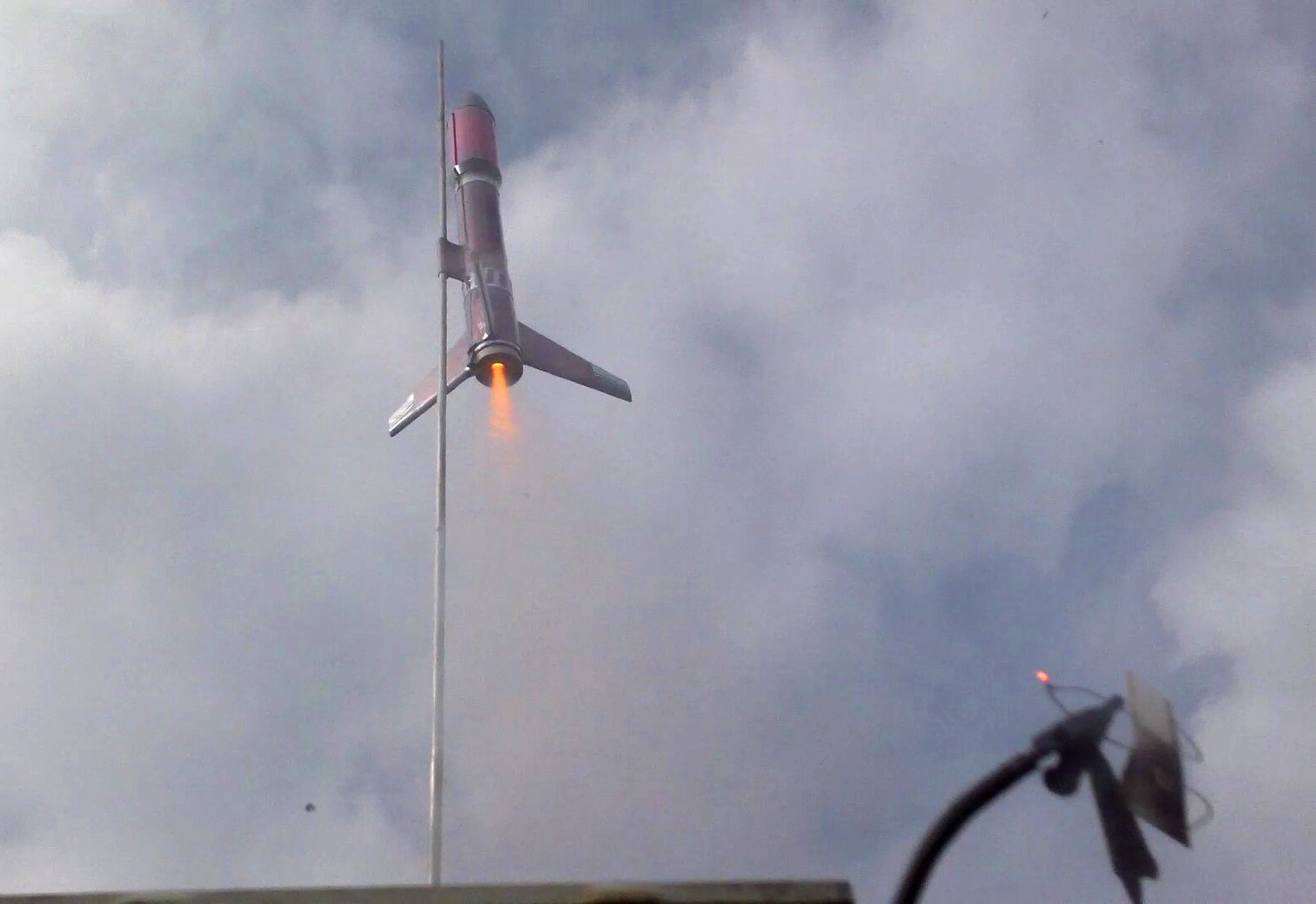 The Quest Gamma Ray is a small payload rocket designed to fly on 18mm (A,B,C) motors. It does fly well.  It's main unique feature is a payload section made with translucent red plastic. The payload section's diameter is larger than the rest of the rocket, so it uses a transition section between the two tubes. It's small size makes it capable of travelling to very high altitudes.  This was my first build of a Quest kit after many Estes models, and I was impressed with the quality of this kit.  The parachute supplied with this kit is rather large for the weight of the rocket, and fitting this into the body tube of the rocket without it being tight is sometimes a problem.  Since the material used for the parachute is not the best, you might want to try a smaller parachute or just be extra careful to pack the chute loosely in the tube.