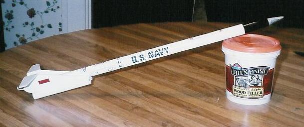 Thinned Elmer's Fill & Finish was used as a sanding sealer. Since this method has been detailed in countless reviews on EMRR, I'll simply say that the F&F and basswood combine to greatly simplify the process of producing glass smooth, decal ready fins and the F&F makes body tube lines virtually disappear. Cheap thrills in the monkey house. Try it.