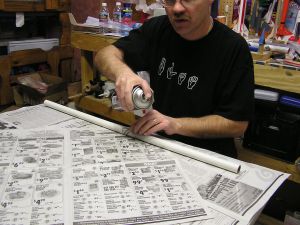 First, start by laying the newspaper flat on the table with tube out on top it. At the very end of the paper, apply paper glue at the tip to secure it to the opposite side of the paper ensuring the inside of the tube does not unravel. Once the end is firmly attached to the paper, begin slowly rolling up the newspaper over the tube, spraying 3M adhesive every roll. As you approach the center of the first sheet, add the second overlapping roughly half the sheet. I found that spraying the adhesive liberally produces a tighter tube. I rolled 4 tubes this way refining my technique each time and changing the number of sheets per tube. I like the 3 sheet tubes the best.