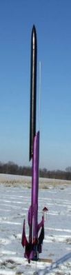 Boost was straight up in the moderate winds, with a little bit of a roll on the way up, maybe 2 rotations. Apogee was in the neighborhood of 300-350 feet, and while the delay was a little early, that's what you want (versus nose down) in terms of deployment on something like this with lots of do-dads sticking out to snag a shroud line.
