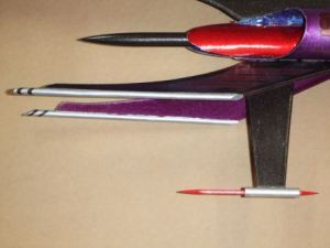 scalloped and sliced BT-50 that slide together, with a section of BT-2.5 slipped inside their seam. A balsa nose cone