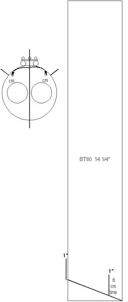 I decided on using the BT80 as my main tube, with 3 pod tubes off of this main. I wanted to use the couplers to hold these pods. Take the 3 couplers (1 BT80 and 2 BT55) and draw lines the length of the coupler on opposite sides (180 degrees apart). For the BT80, make a mark at 2” on one line and a mark at 1” on the other. For the BT55, make the marks at 1” and ½”. Using stiff paper, connect the marks on both sides. Using a sharp knife, cut along these lines.