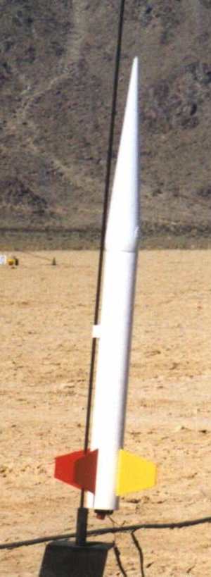 Flight conditions were very warm with light to zero wind. The flight was very fast, stable and high. The chute came out perfectly and the rocket came down about 150 yards from the pad for a perfect flight. No damage was observed on the rocket body, nose cone or fins.