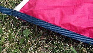 I looked at some of the economy large parachutes, but found these to be only slightly better than the surplus style. Then I looked at the Standard and Pro Experimental parachutes by Rocketman Enterprises, and my decision was made. The Standard Rocketman parachutes are made of 1.2 rip stop nylon and have very sound construction. The available sizes handle rockets weighing 1.5 pounds, up to 65 pounds, and are available in vivid colors. The Pro Experimental Chutes are substantially more durable than the standard chutes, made of heavy 1.9 rip stop nylon with heavy-duty shroud lines. My R3C drogue has 5/8-inch tubular nylon lines and the R18C has 9/16-inch flat nylon lines. The lines extend over the top of the chute (Fig-1). And best of all, there are only 4 shroud lines. I vacillated a while on which style to purchase as the Pro-Experimental R18C parachute is about $90 more than the standard R18C. I decided to get the best, and placed my order for an R18C for my main parachute, and an R3C for the drogue, both Pro-Experimental chutes. Rocketman Enterprises also offers a third line of chutes, the Ballistic Systems, however the R18C size is currently not available, so I did not look into these.